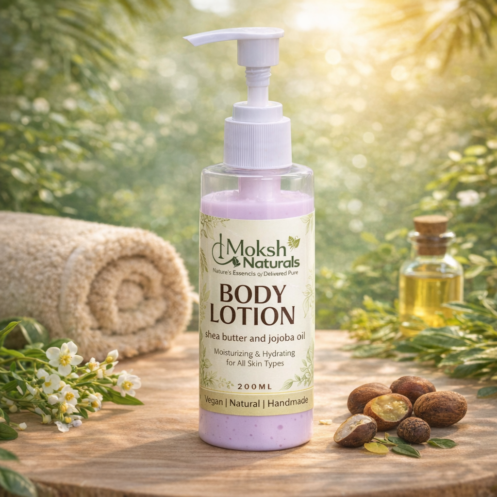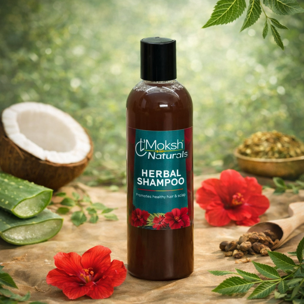 At Moksha Naturals, we create natural skincare, haircare, and body care products using plant-based ingredients, traditional herbal extracts, and pure essential oils. Our formulations are thoughtfully crafted to nourish the skin, strengthen hair, and support overall wellness—without harsh chemicals or synthetic additives.
